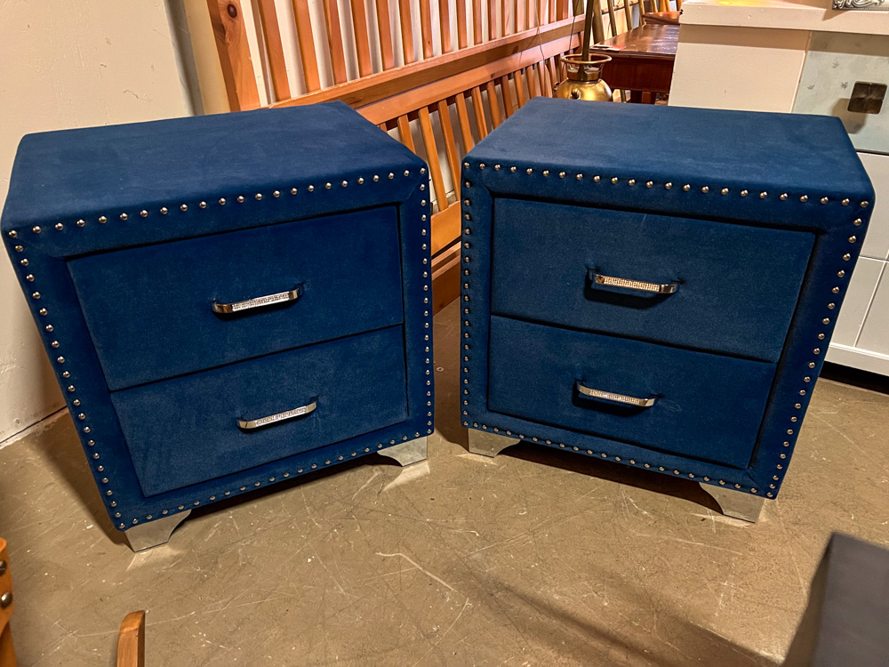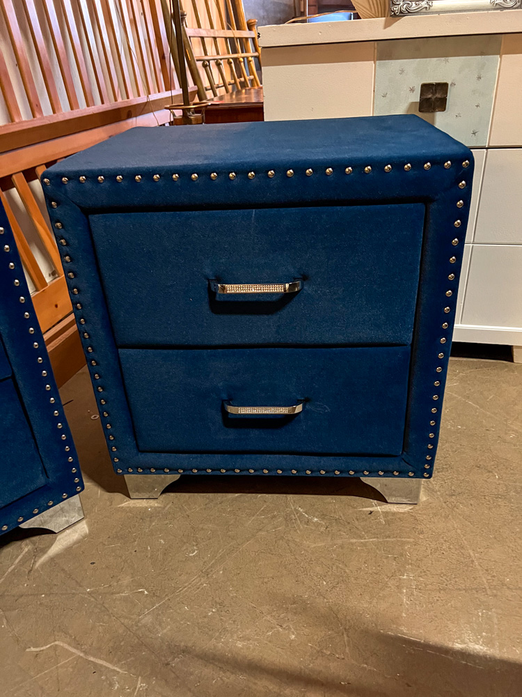 Blue Velvet Upholstered Nightstand with 2 Drawers – Brand New Coaster Furniture – 2 Available – 53488 and 53489 – $99 Each