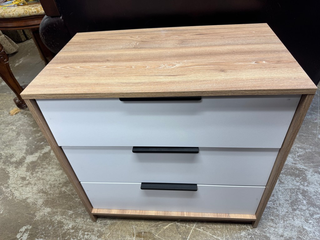 November 18, 2025 New Leaf Home Furnishings Chest of 3 Drawers Dresser or Oversized Nightstand 66174 – $139 Measures 27x16x27H Share with Friends and Family: Click to email a link to a friend (Opens in new window) Email Like Loading... Related