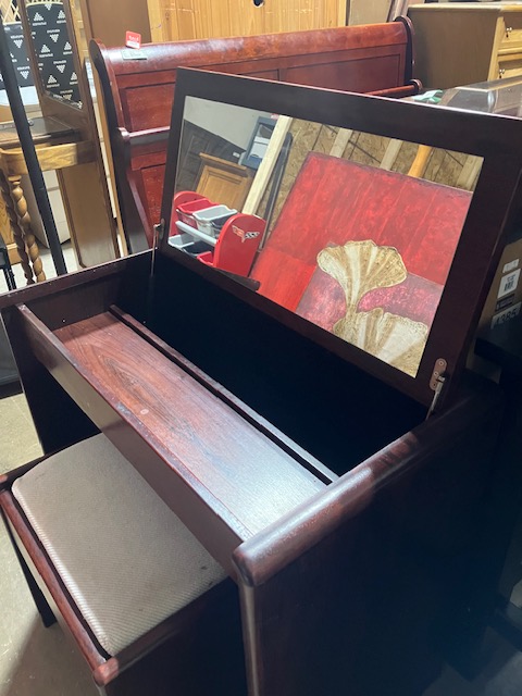 November 22, 2025November 30, 2025 New Leaf Home Furnishings Lift Top Vanity with Mirror and Stool – Danish Modern Rosewood 66188 – $139 33Wx19Dx30H Share with Friends and Family: Click to email a link to a friend (Opens in new window) Email Like Loading... Related