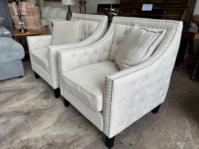 January 25, 2026January 27, 2026 New Leaf Home Furnishings Arm Chair Tufted with Nailheads (2 Chairs may be available) 66732 – $149 each 31Wx29Dx35H seat is 17″from floor Share with Friends and Family: Email a link to a friend (Opens in new window) Email Like Loading... Related
