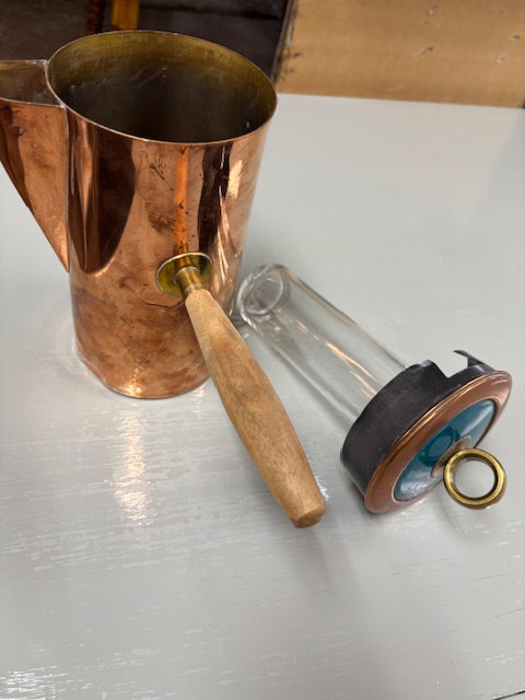 February 3, 2026 New Leaf Home Furnishings MCM Copper Barware – Pitcher with Ice/Heat Glass Insert – Georges Briard ‘El Dorado’ – 66817 – $35 Share with Friends and Family: Email a link to a friend (Opens in new window) Email Like Loading... Related