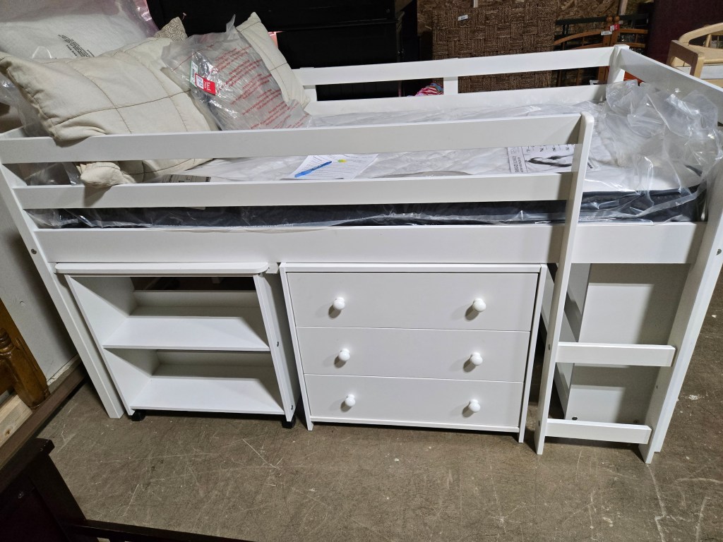February 3, 2026 New Leaf Home Furnishings White Twin Loft Bed with Desk and Chest of 3 Drawers and Shelving – $299 Share with Friends and Family: Email a link to a friend (Opens in new window) Email Like Loading... Related