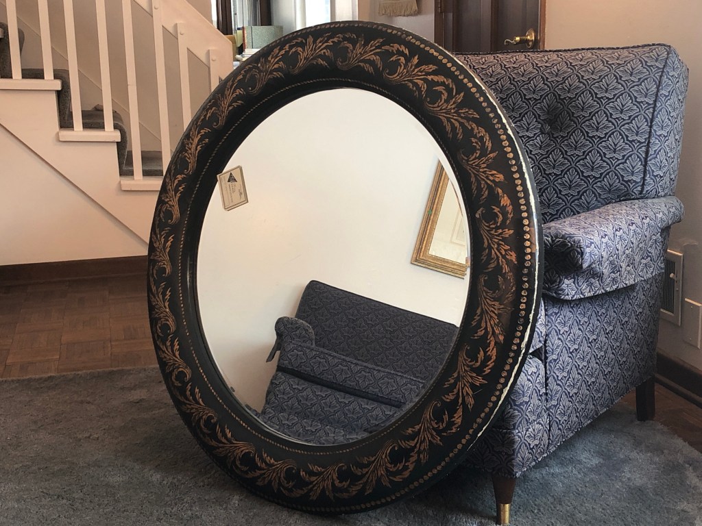 February 10, 2026February 13, 2026 New Leaf Home Furnishings Large Round Vintage Mirror with Pattern 66834 – $149 Measurements: 38D Share with Friends and Family: Email a link to a friend (Opens in new window) Email Like Loading... Related