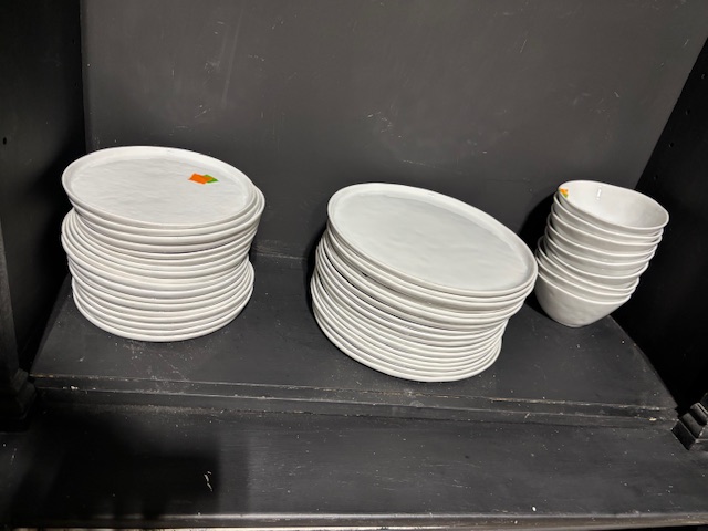 Price includes 11 dinner plates, 8 salad plates, 9 low bowls, 9 cereal bowls, 2 large serving bowls, and gravy server with plate