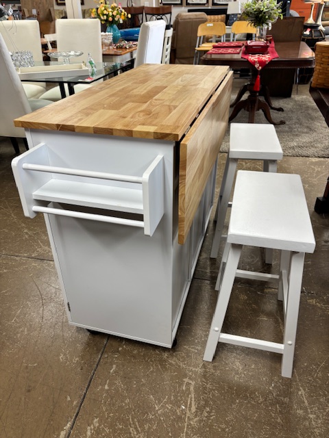 April 10, 2026 New Leaf Home Furnishings Drop Leaf Kitchen Island on Wheels with 2 Barstools / Item EELG8N – $250 Share with Friends and Family: Email a link to a friend (Opens in new window) Email Like Loading... Related