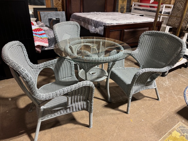 April 10, 2026April 10, 2026 New Leaf Home Furnishings Pier 1 Indoor / Outdoor Round Wicker Dining Table Set with 3 Chairs – $350 for set Share with Friends and Family: Email a link to a friend (Opens in new window) Email Like Loading... Related