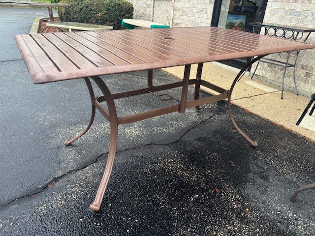 April 30, 2026 New Leaf Home Furnishings Outdoor Rectangular Metal Dining Table with Umbrella Hole / Item NYY97 – $70 Share with Friends and Family: Email a link to a friend (Opens in new window) Email Like Loading... Related